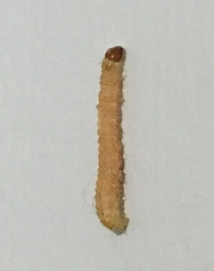 This most likely is a caterpillar of an Indianmeal moth, Plodia interpunctella (Lepidoptera: Pyralidae).These caterpillars will feed on a very wide variety of stored food products, including grain-based meals, dried fruit, nuts, bird seed, etc., so you should inspect all your food storage areas for signs of infestation. See http://tinyurl.com/zhgsj23 for more detailed information, including some control recommendations. Ed Saugstad, retired entomologist; Sinks Grove, WV.