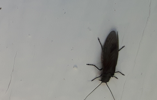 Number 6906. This looks like an alderfly (Neuroptera: Sialidae). They usually lay their eggs in situations where their newly hatched larvae can drop into water. Their larvae are predators on other small aquatic life forms, and are an important part of the freshwater food web. Click here for additional information.