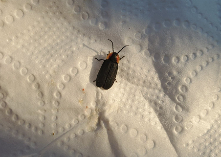 Number 6945. This appears to be a day-flying firefly (Coleoptera: Lampyridae). Some net-winged beetles (Coleoptera: Lycidae) in the genus Plateros can be very similar in appearance, but their wing covers have a reticulate pattern rather than being smooth.