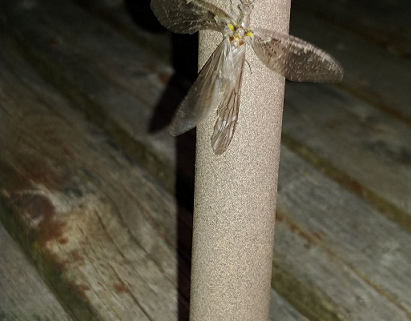 Number 6438. This looks like a female spring fishfly, Chauliodes rastricornis (Megaloptera: Corydalidae; subfamily Chauliodinae); their larvae are aquatic and sometimes called hellgrammites. Click here for more detailed information.