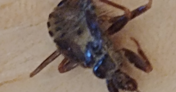 Number 6610. This is a nymph an assassin bug known as a masked hunter (Reduvius personatus; Hemiptera/Heteroptera: Reduviidae), a cosmopolitan species often found indoors and reputed to have a very painful ‘bite’- Click here for more detailed information.
