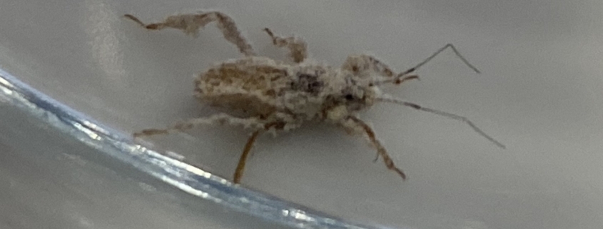 7139. November 30th, 2020 found this insect inside the house in the couch. About 1 cm long body. 6 legs and a pair of antennas. White powder all over body leaving marks on where it was on the couch. We had a bit of snow the past week. Currently 5 degrees. Thanks. Brossard, Quebec. Canada